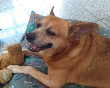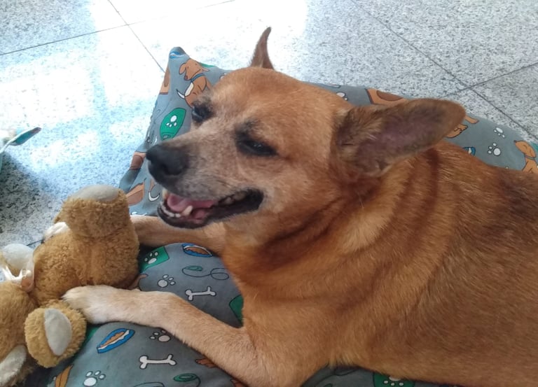 Avaliações regulares para manter seu pet saudável, principalmente em idosos como o Duque com seus 14 anos (foto ao lado).